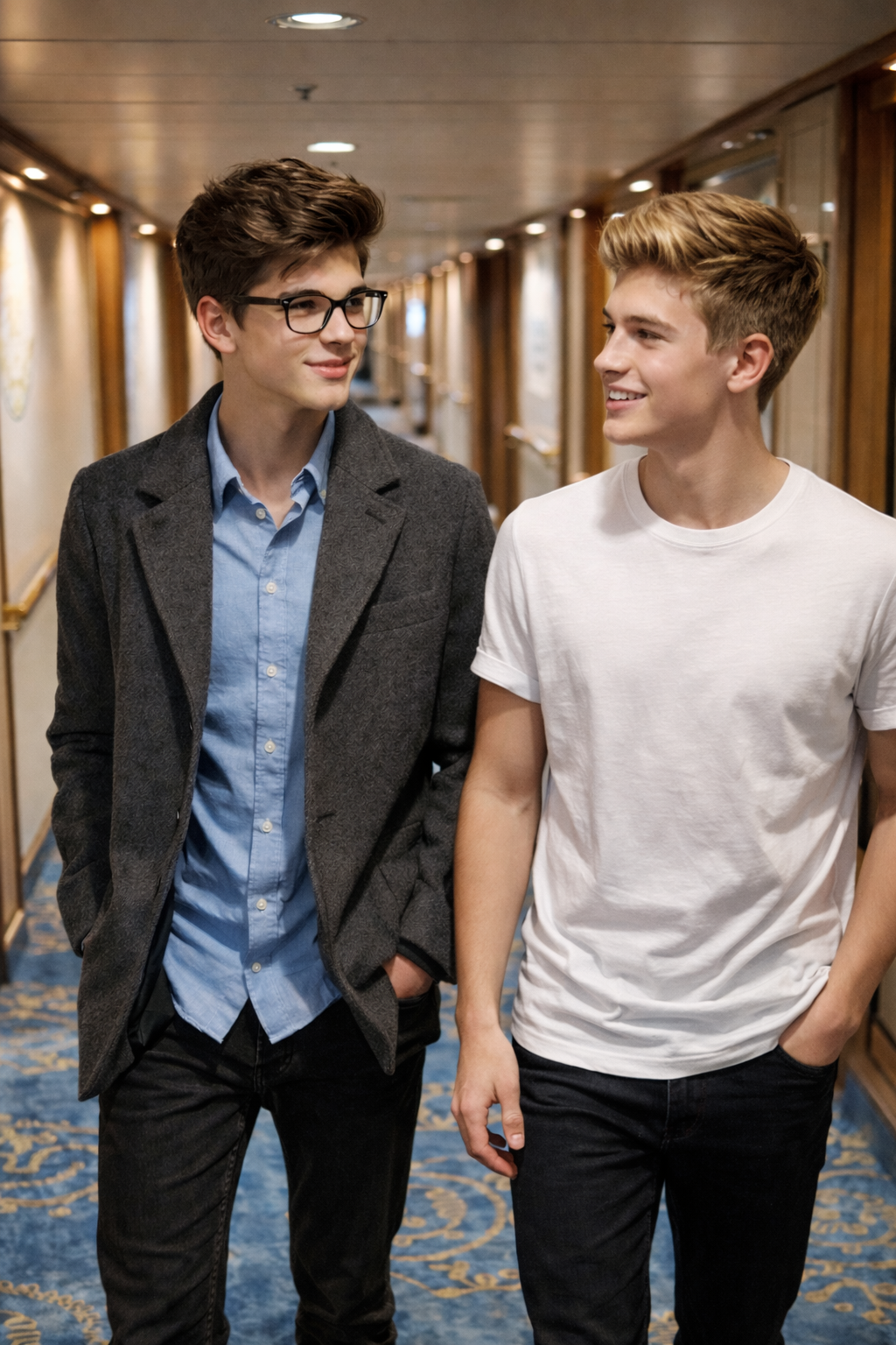 A while later the lift stopped at the 10th floor and the duo got out and by the time they reached their cabin the door was left ajar and the both the boys luggage was set near a closet.